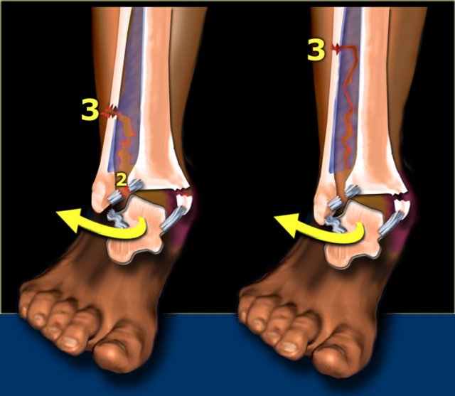 Now the injury can stop and there will only be a rupture of the medial collateral ligaments or avulsion of the medial malleolus.