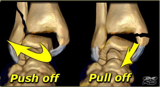 An oblique or vertically oriented fracture indicates 'push-off'.