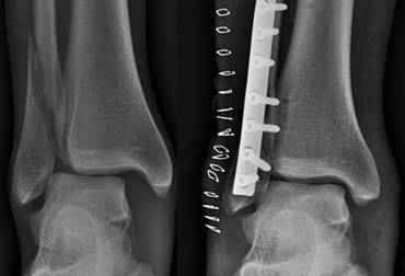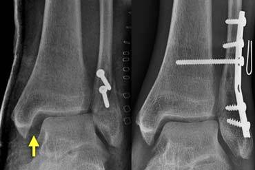 Resurgery was necessary with placement of a syndesmotic screw to stabilize the ankle joint.