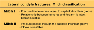 - Lateral condyle fracture