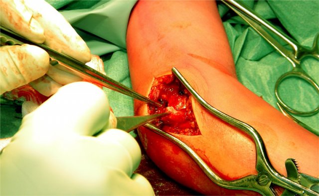 On the lateral side this can result in a dislocation or a fracture of the radius with or without involvement of the olecranon.