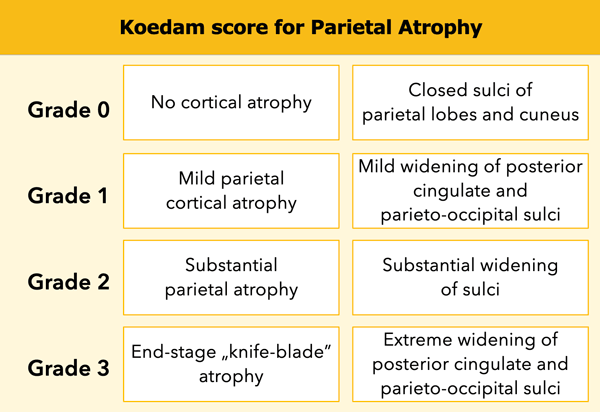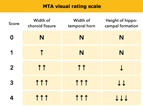 The score is based on a visual rating of the width of the choroid fissure, the width of the temporal horn, and the height of the hippocampal formation.
