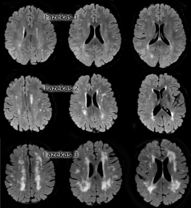 FLAIR images of the same patient show Fazekas 2 white matter hyprintensities.