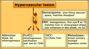 In the table on the left we have summarized the typical findings in FNH, Adenoma and HCC.