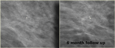 At six month follow up they had increased in number and DCIS was found at biopsy.