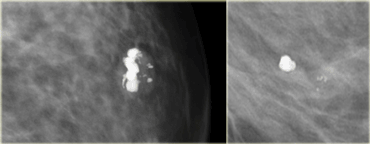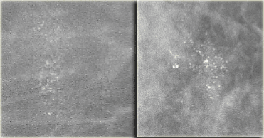 On the left a patient in whom new calcifications were detected during follow up for breastcancer in the contralateral breast.