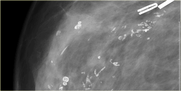 During the vacuum assisted biopsy procedure it was not possible to biopsy these calcifications, because they were out of range.