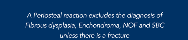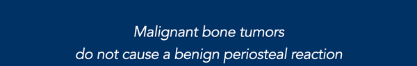 Detecting a benign periosteal reaction may be very helpful, since malignant lesions never cause a benign periosteal reaction.