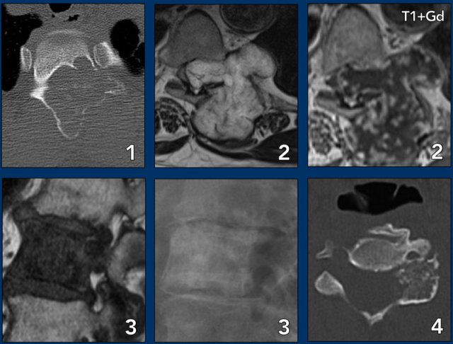 Hemangioma - spine, ribs, craniofacial bones, femur, tibia