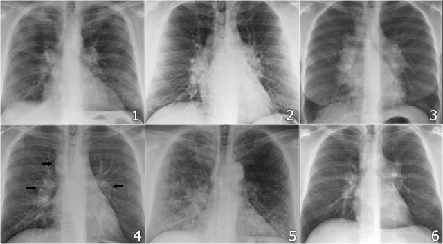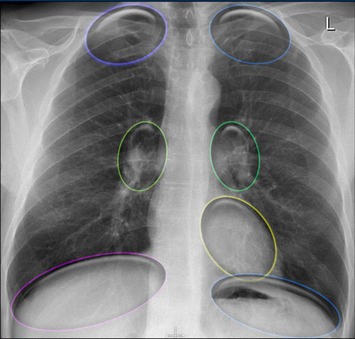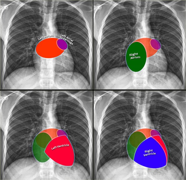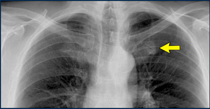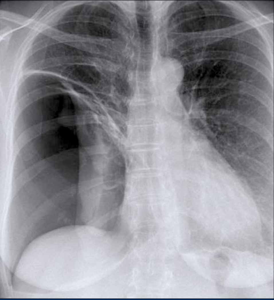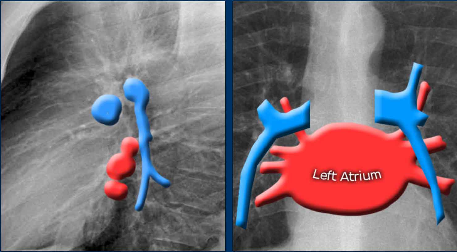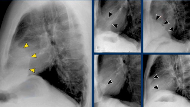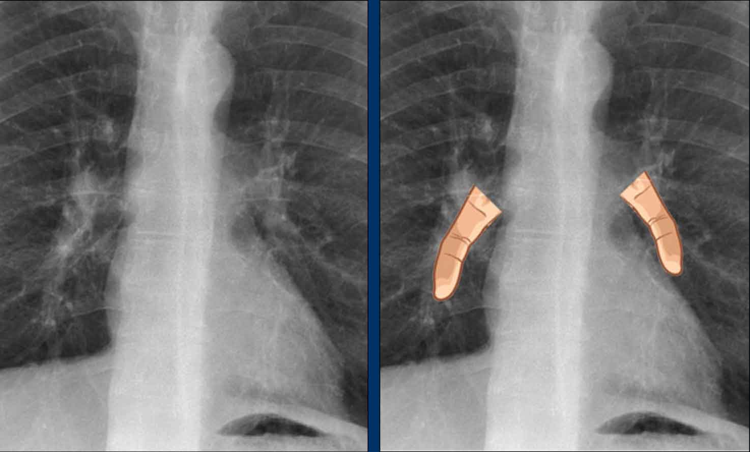 - Silhouettes (e.g., the aortic knob or left ventricular contour)