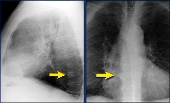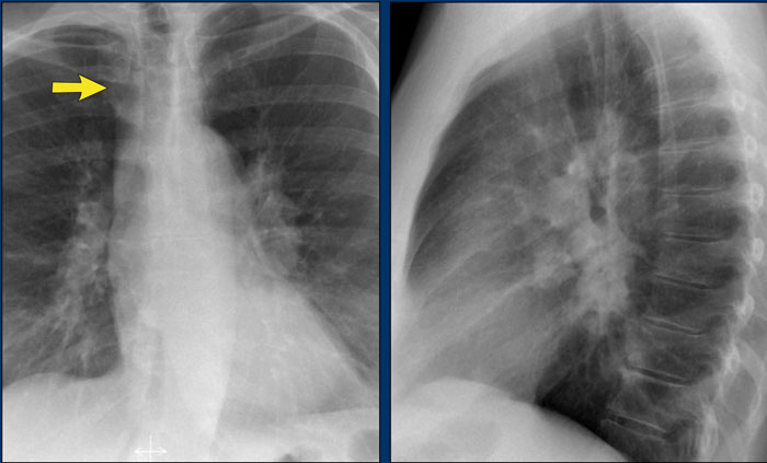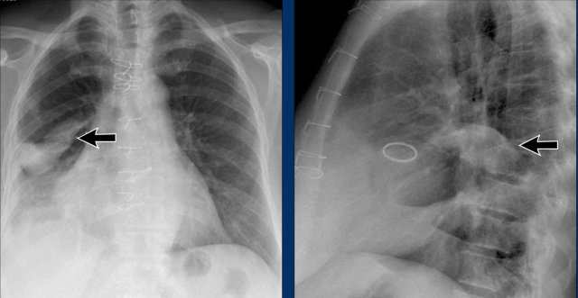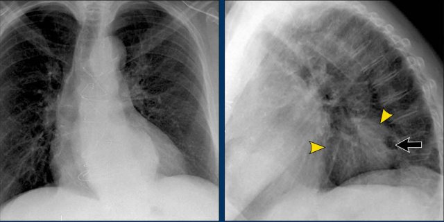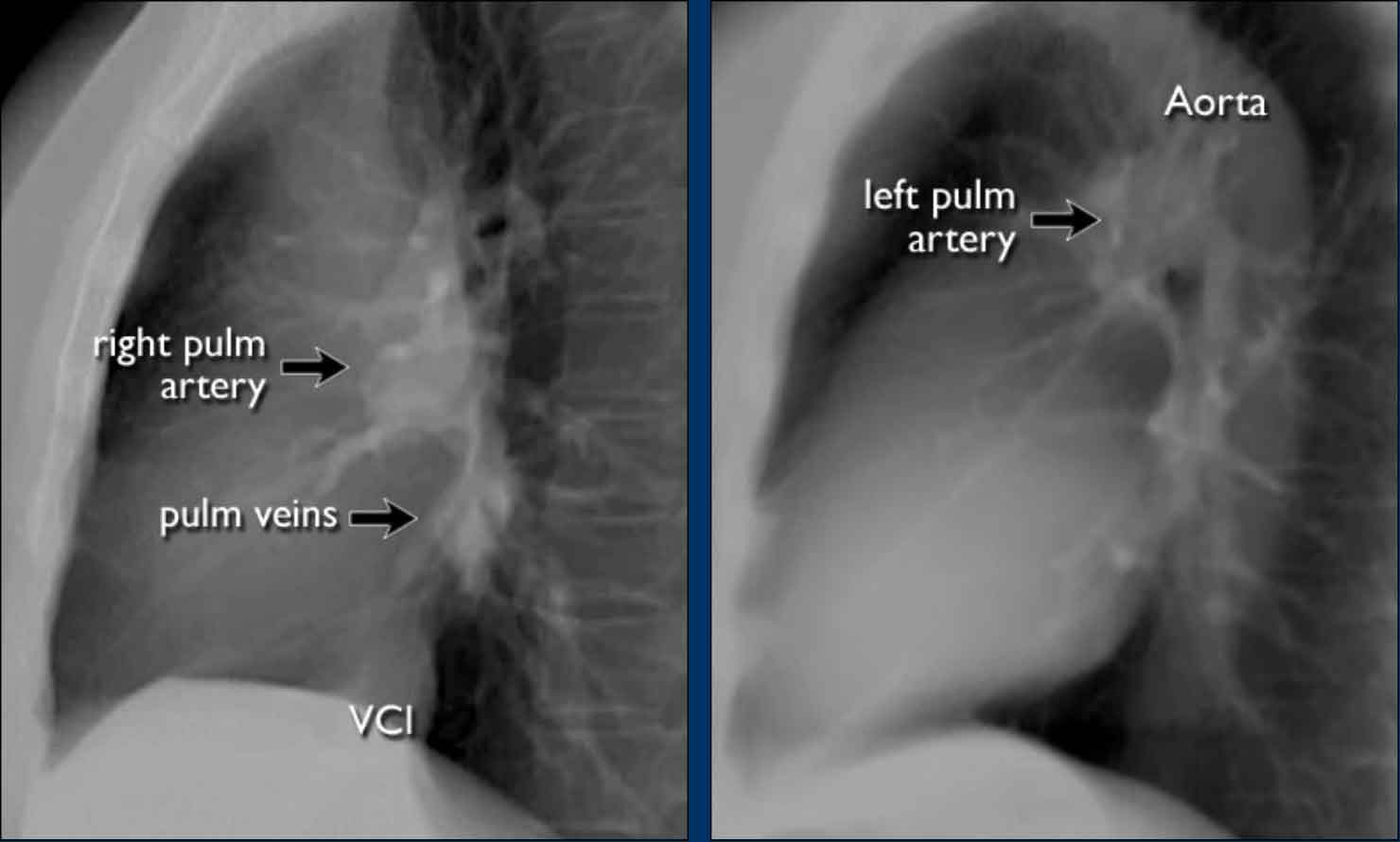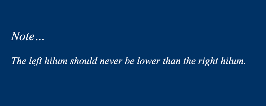 Understanding normal hilar anatomy on the lateral view facilitates detection of abnormalities.