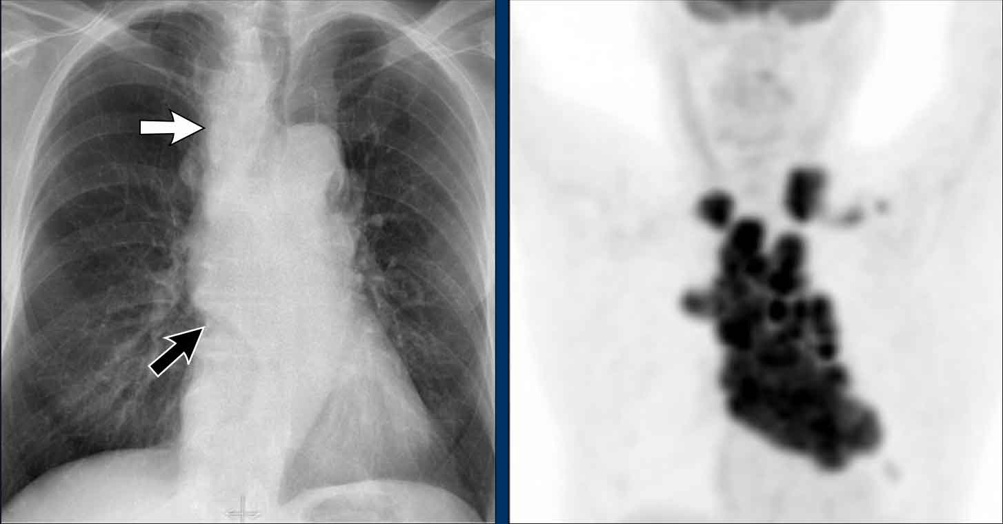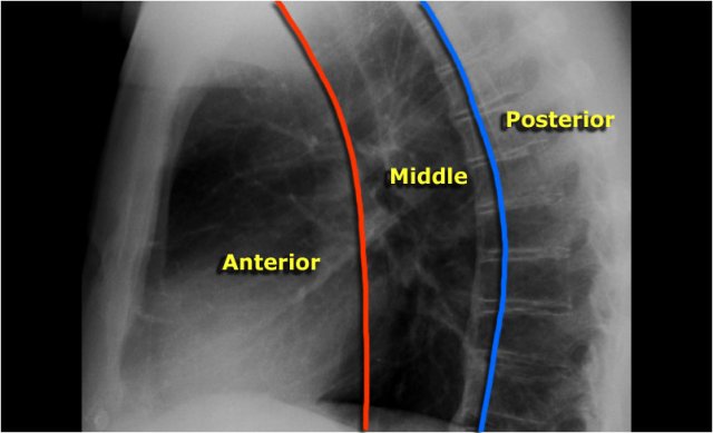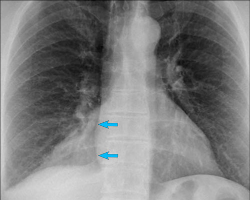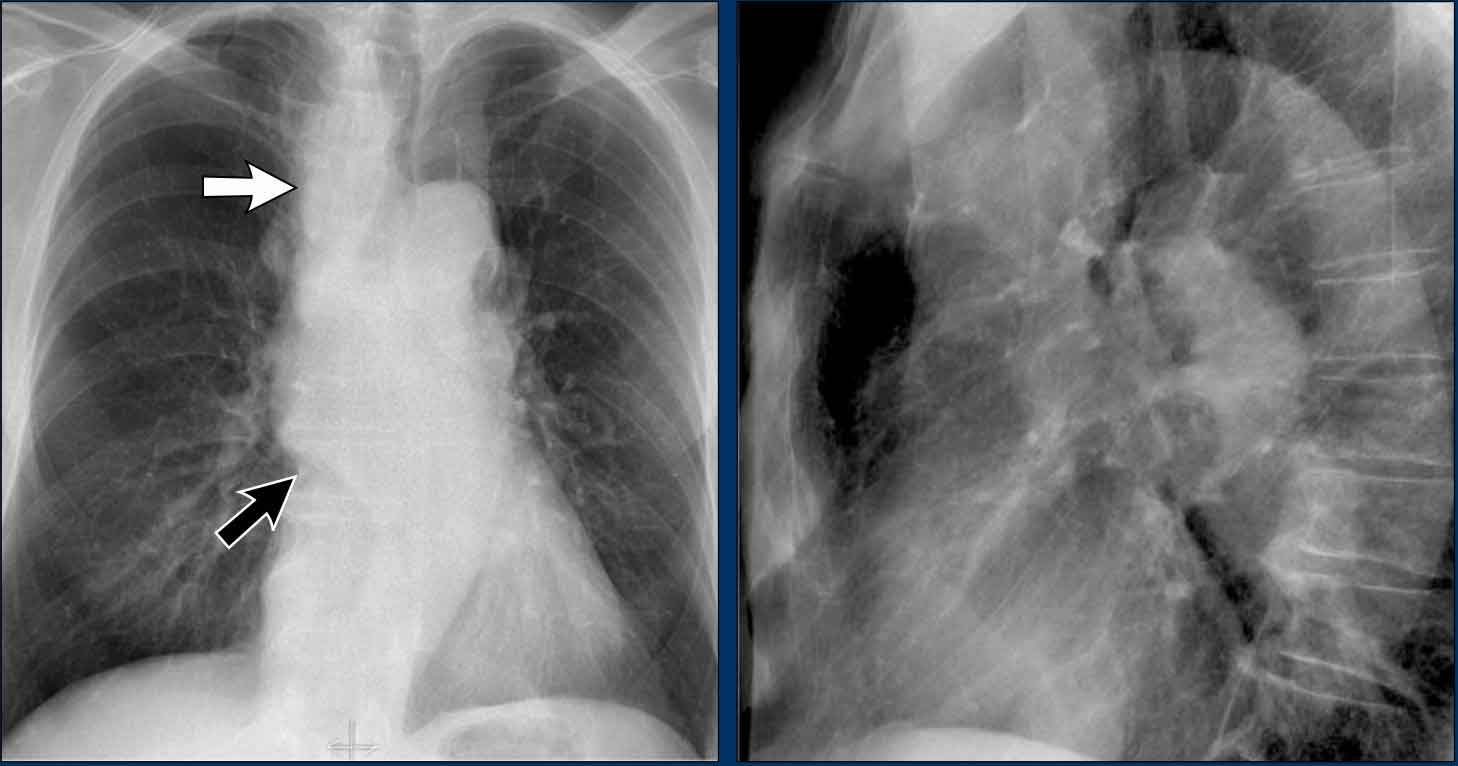 When the superior mediastinum appears widened on the PA view, the lateral view is useful to localize the abnormality.
