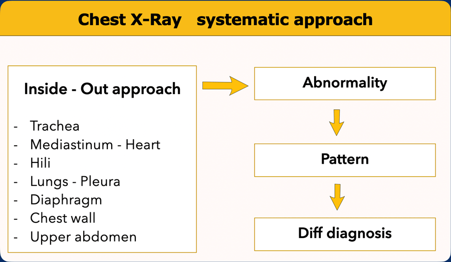 A structured, methodical approach is essential for accurate and reproducible interpretation of chest radiographs.