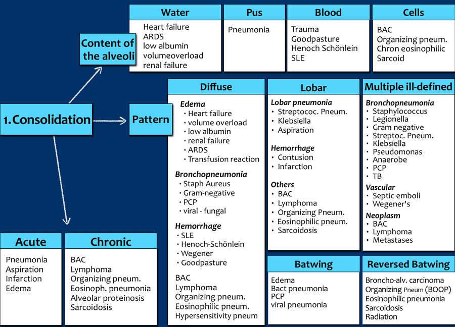 These lung-patterns are discussed in Chest X-Ray - Lung disease four pattern approach.