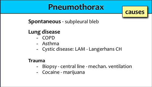 Common causes of pneumothorax include trauma, spontaneous rupture of subpleural blebs, and iatrogenic events.