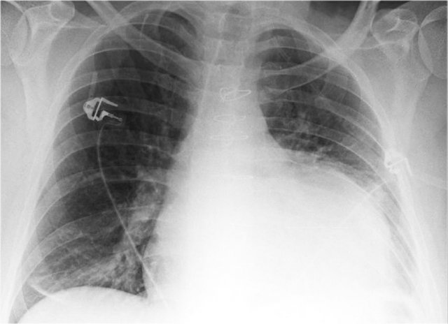 - Presented as a pleural opacity, presumed to be a hematoma (arrow).
