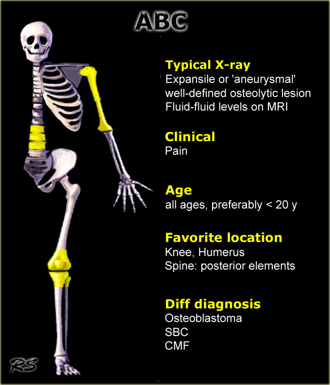 In the proximal humerus or femur of young children there is frequently a differential diagnosis of ABC, SBC and fibrous dysplasia.