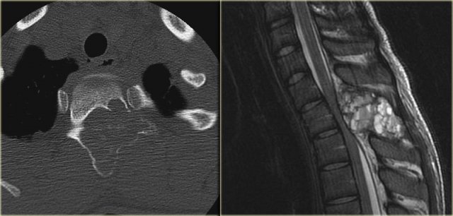 On the left a typical location for an ABC in the posterior elements of the spine.