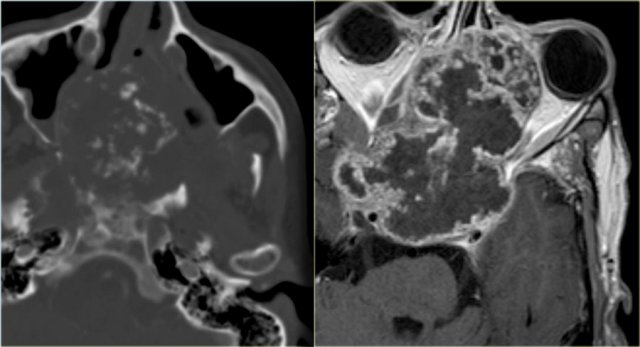 On the left a radiograph and CT-image of another typical adamantinoma.