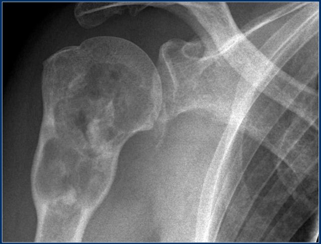- In young patients with location in proximal humerus or femur: solitary bone cyst or aneurysmal bone cyst.