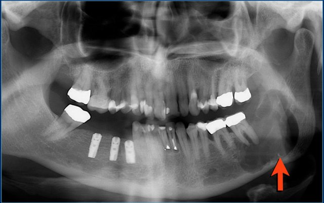 Here an expansile lytic lesion with thin peripheral bone shell originating from the left mandibular head.