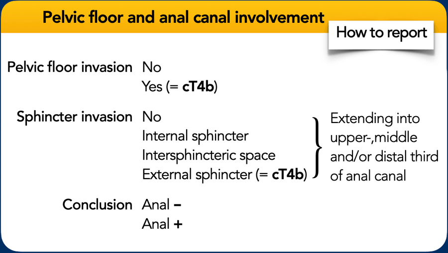 - Purpose: Optimal evaluation of anal sphincter invasion.