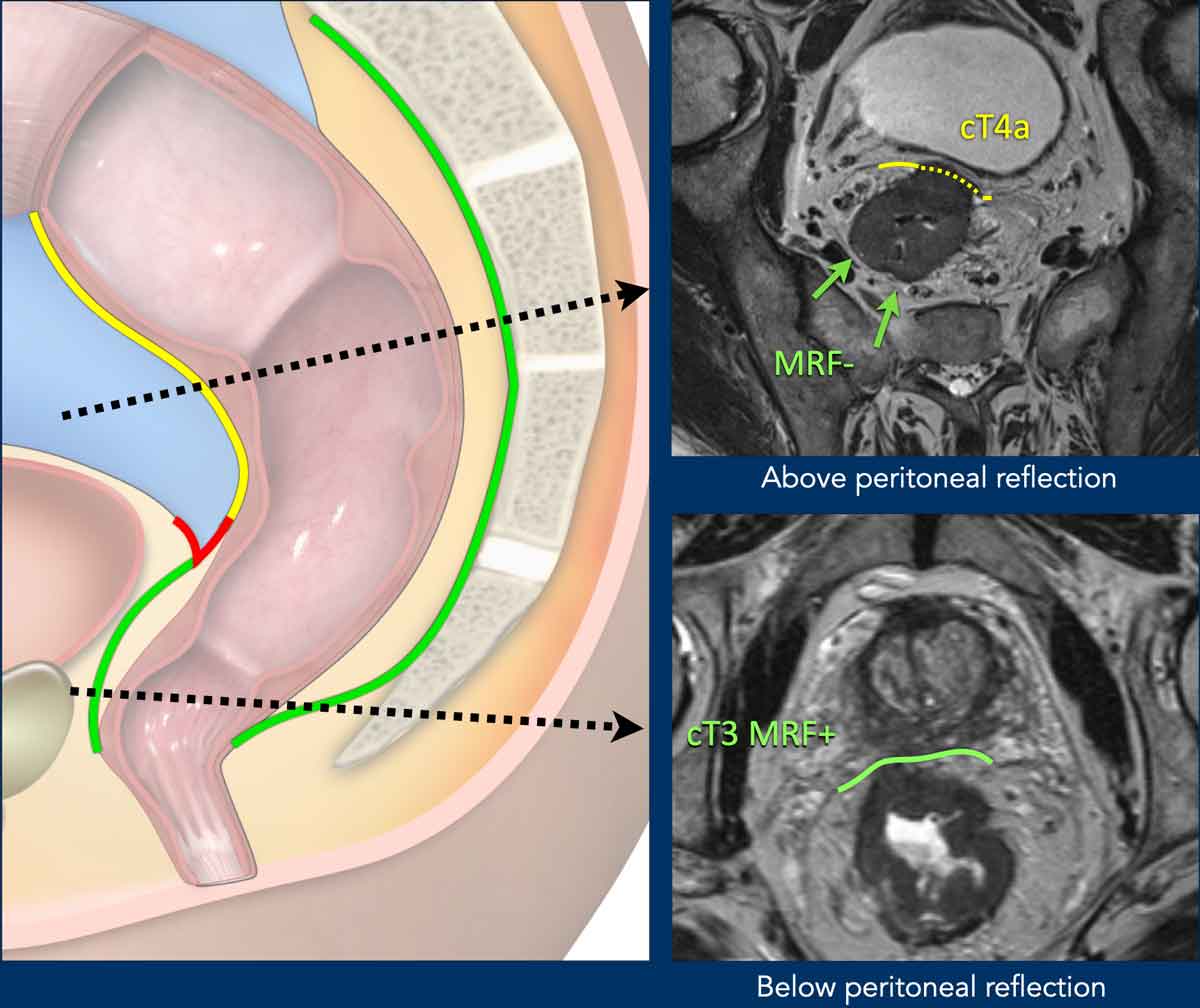 With special attention for the anterior peritoneal reflexion, mesorectal fascia and extramural vascular invasion.
