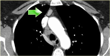 On the left an image just above the level of the pulmonary trunk demonstrating lower paratracheal nodes on the left and on the right.
