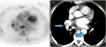 On the left a PET image demonstrating FDG uptake in a station 8 node.